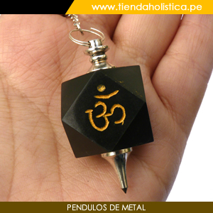 Este modelo de péndulo tiene en uno de sus 14 lados el símbolo del Om grabado en bajorrelieve. Está fabricado en piedra natural y las partes de metal ayudan en el equilibrio y precisión de los resultados de lectura de sus oscilaciones. Cada mineral también contribuyente al uso de los péndulos con sus propiedades.